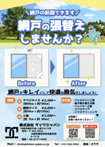 今年は網戸の張替えも行っていきます♪